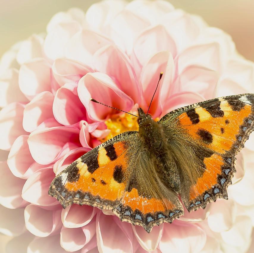 ‘Diana’s Memory’ is a gorgeous light pink waterlily dahlia with a buttercream center. Must pinch and cut deep to coax out longer stems